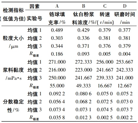 穆宇同等在不同的砂磨工艺条件即研磨介质填充率、钛白粉进料量、不同转速、不同研磨时间对钛白粉浆料粒径、浆料黏度与分散稳定性能的影响,最终确定了较优的工艺方案。