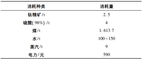 某硫酸法钛白企业单吨钛白物耗能耗情况