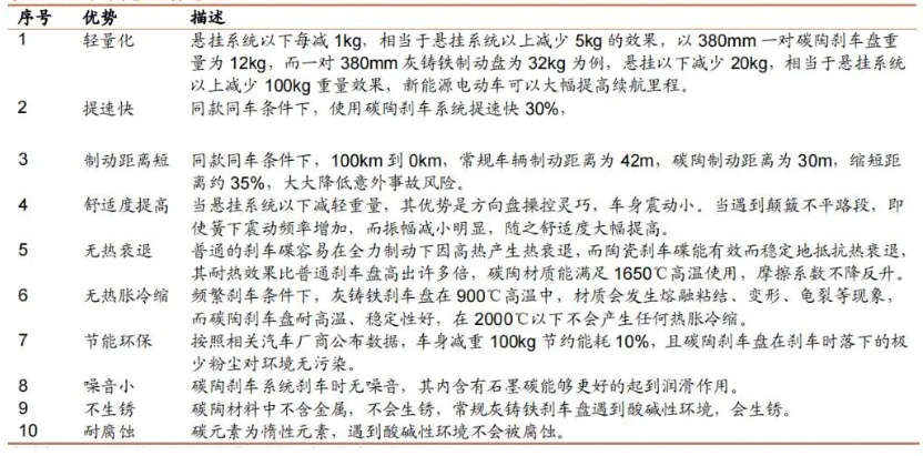 随着中国产企业在该领域技术不断突破,以及新能源车“增配、高配、智能化”趋势的不断演进,国产新能源汽车碳陶盘的渗透率有望不断提高。