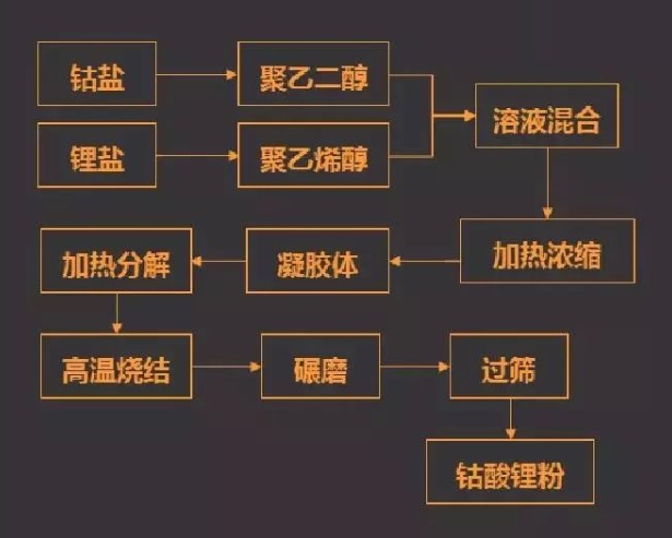 而液相合成法的主要思路是将锂盐和钴盐加入金属醇盐,通过溶液形成溶胶,再形成凝胶,随后将凝胶进行热处理后得到钴酸锂。