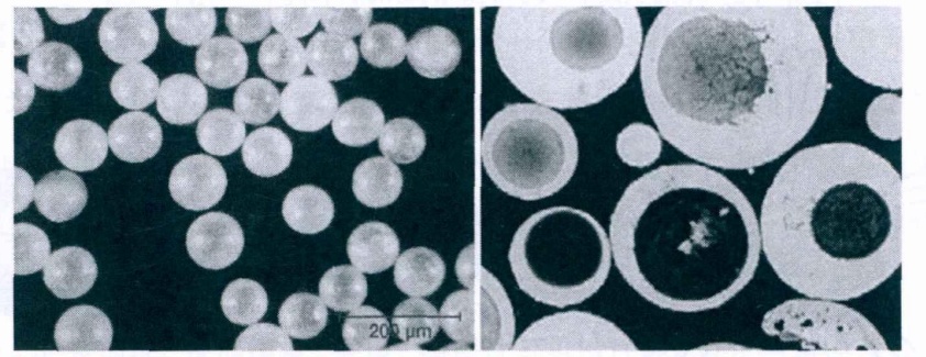 美国Sulzer Metco公司于20世纪80年代提出了一种空心微球的数学模型,并成功研制出了氧化钇稳定的氧化锆(YSZ)空心球形粉体,以及其它多种适用于喷涂领域的空心粉体。其具体的制备方法受到专利保护,其制备技术被美国政府严令转让到国外。