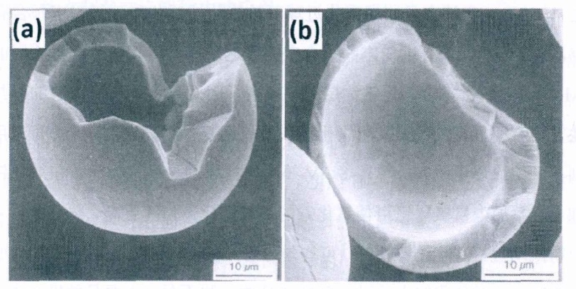 单个空心颗粒的SEM照片:(a)3Y·ZrO2;(b)Y2O3