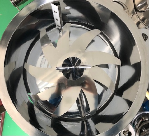 相比于其它混合机由于中心部和外部的转速不一,中心部容易产生团块的缺点,兮然科技的包覆混合机利用涡流、对流作用,令槽内物料均匀分散。而且,普通的机器原料是从外围部移动到上部,所以上盖部容易产生团块,而兮然科技的设备在运作中,原料是从外围部移动到中心部,因此不存在这个问题。