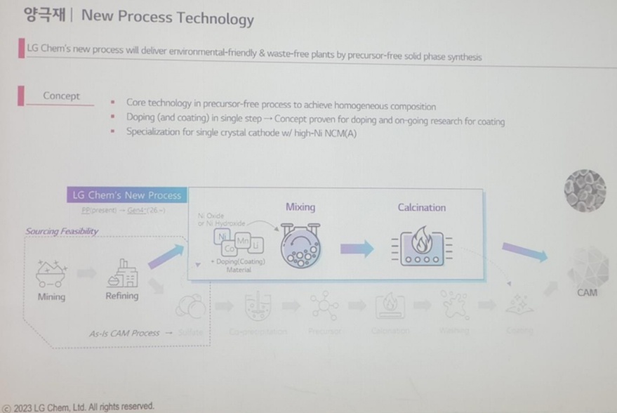 LG化学在此前的行业活动中也透露了其无前驱体正极材料的开发。