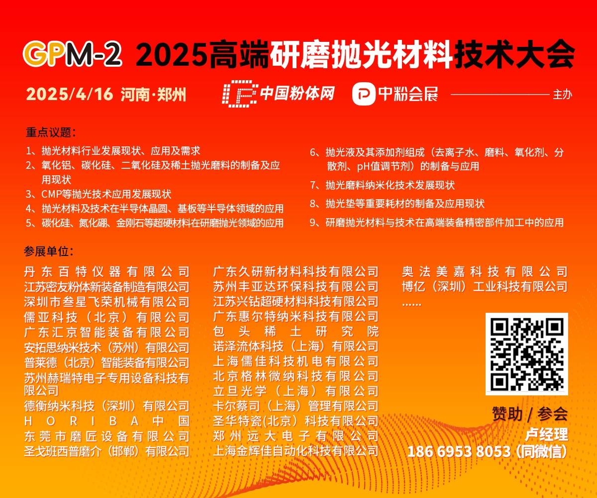 2025高端研磨抛光材料技术大会将于2025年4月16日在郑州举办,深圳市新凯来技术有限公司作为参会企业邀请您共同出席。