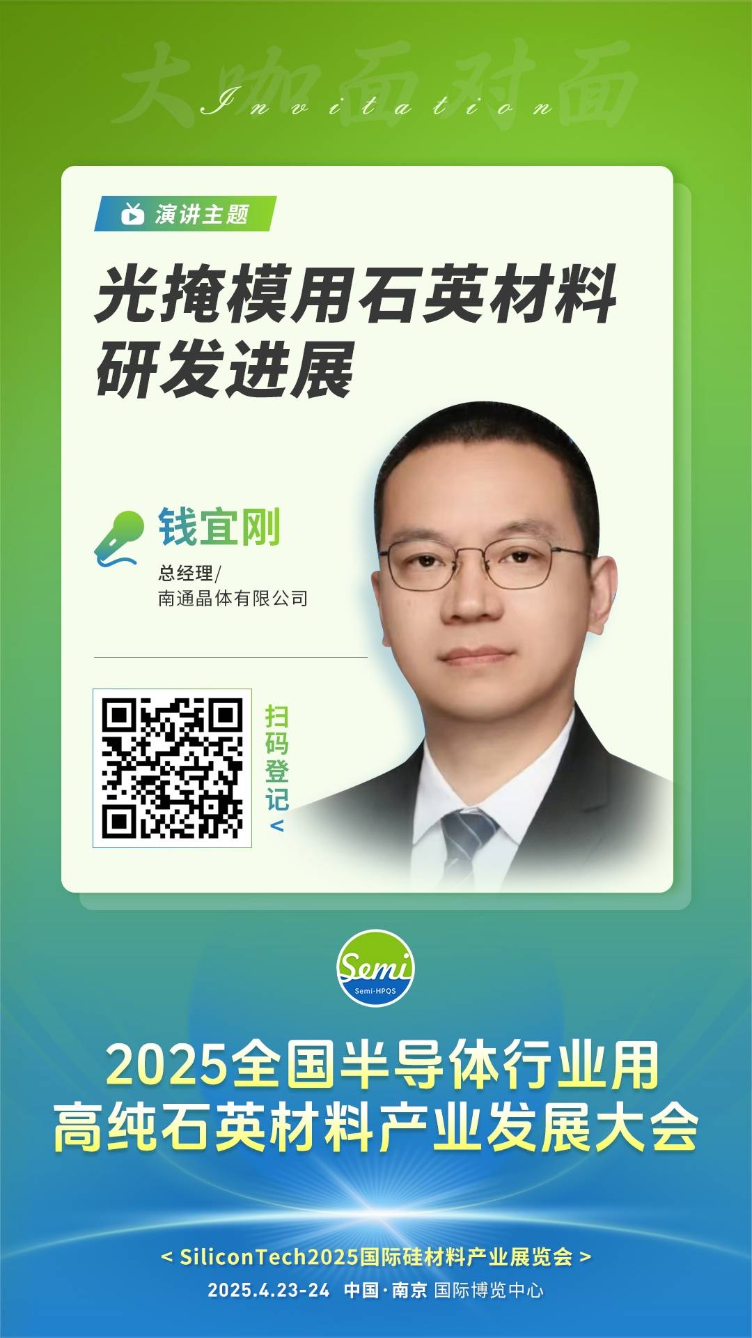 2025年4月23-24日,由中国粉体网、中粉会展主办的“2025全国半导体行业用高纯石英材料产业发展大会”将在江苏南京召开,届时来自南通晶体有限公司的钱宜刚总经理,将做题为《光掩模用石英材料研发进展》的报告。