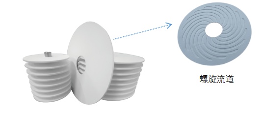 陶瓷膜片外侧为膜层,中间为龙骨层,龙骨层设有更助于流体运动的特殊通道。盘片成膜工艺采用了第三代涂膜法,膜层均匀细致,极低的表面粗糙度可最大限度地避免污染物堆积。基于特殊整体工艺,碟片能承受更高的负荷。它平衡了机械强度、化学稳定性和最小流体限力的要求。高精度的平面标准确保了低振动和在旋转系统中使用的长寿命。