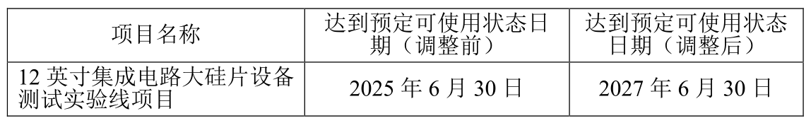 “12英寸集成电路大硅4片设备测试实验线项目”日期调整