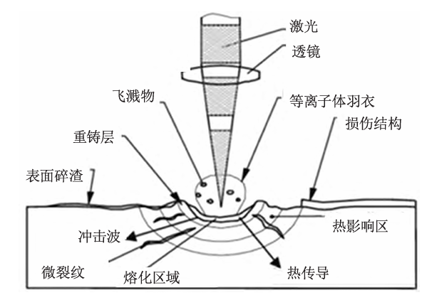 激光热裂解技术分为两步实施:首先,激光辐照材料表面,材料吸收激光能量后迅速升温,产生热膨胀挤压周围未受热材料,形成压应力作用;其次,随着激光扫描的进行,材料高温区域的温度因热传导与热对流逐步下降,产生温度梯度,在材料内部形成拉应力作用。当内部的局部应力超过材料的强度因子时,裂纹尖端开始扩张与扩展。