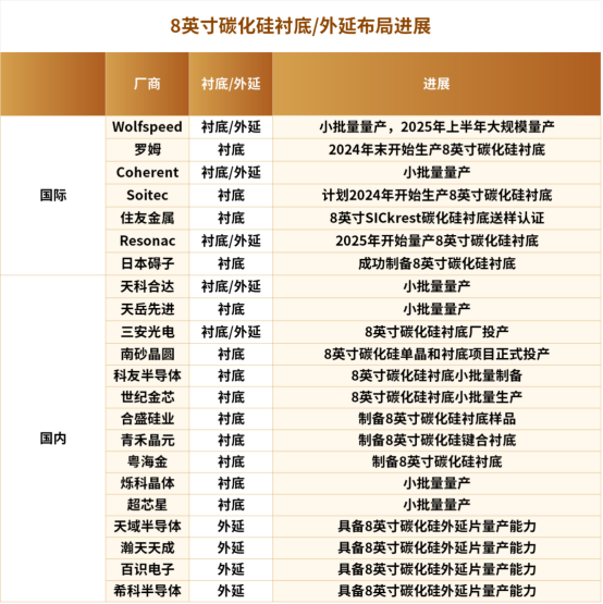 在产品尺寸上,相比6英寸SiC市场,8英寸更是碳化硅产业的未来增长点,国厂商也在加速布局。
