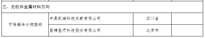 在无机非金属材料方面,主要包括:可降解半水硫酸钙、硫酸钙、氮化硅陶瓷、3D打印氧化锆陶瓷墨水、纳米羟基磷灰石、无机非金属涂层材料、胶原/磷酸钙复合材料。