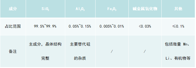 简言之,超白低铁石英砂含硅量高、含铁量低的特质,能够保证玻璃的均匀稳定性和高透光性,是制备高质量光伏超白玻璃、光伏新能源组件等的首选材料。低铁石英砂需求量巨大,是对我国光伏产业高质量发展具有重要作用的一类石英原材料产品。