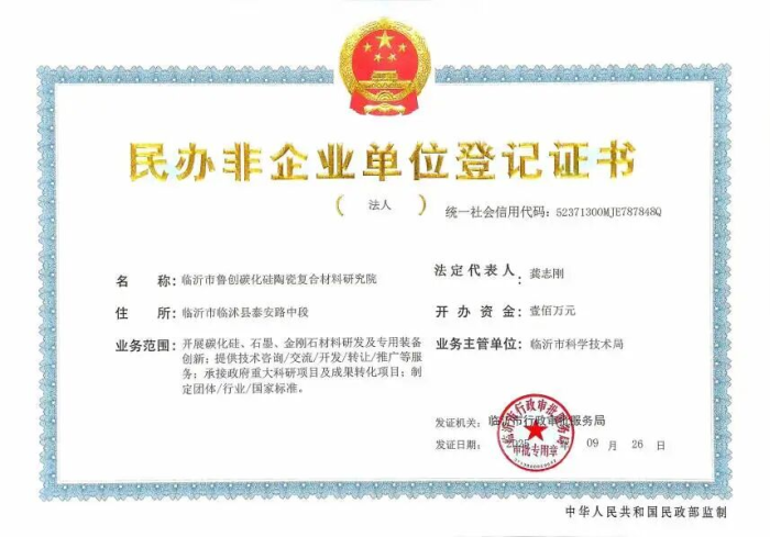中国粉体网讯 近日,据临沂市行政审批服务局消息,由山田新材料集团有限公司(以下简称“山田新材料”)牵头建设的临沂市鲁创碳化硅陶瓷复合材料研究院正式注册成立。