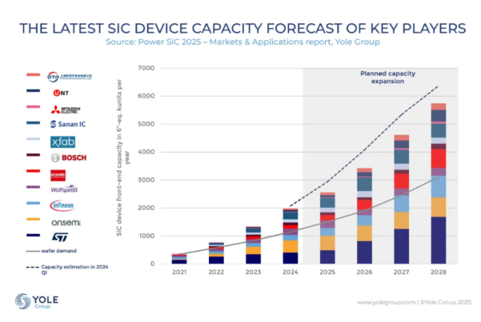 近日,Yole公布了对碳化硅(SiC)功率器件市场的最新预测。预测显示,该市场在2024年至2030年期间将以20%的复合年增长率(CAGR)增长,到2030年将扩大到103亿美元。