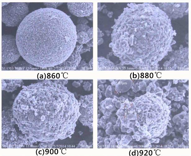 NCM622不同煅烧温度下SEM图