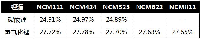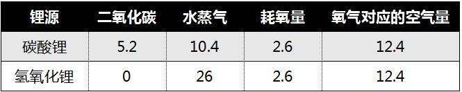 从表中可以看出,采用碳酸锂为锂源时,三元材料烧失率约为25%,采用氢氧化锂为锂源时,三元材料烧失率约为28%。这部分质量的损失主要是废气的产生造成的。用碳酸锂为锂源时,废气是二氧化碳和水蒸气;用氢氧化锂为锂源时,废气主要是水蒸气。