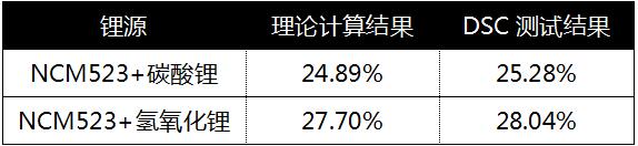 NCM523烧失率的理论计算结果和DSC测试结果对比