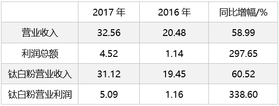 近年,国家供给侧改革各项工作有效推进,钛白粉产能得到有效控制,行业供给过剩的状况得到改善,产能集中度逐渐提升,产品结构得到优化。 2016和2017年钛白粉处于景气周期,产品价格呈现上涨之势,供应紧俏,库存大幅下降,年出口量保持着两位数的较高增速。随着钛白粉产业转型升级,中国正由钛白粉制造大国向强国迈进。下面我们来关注一下国内钛白粉上市公司的年报中都透漏了哪些信息。
