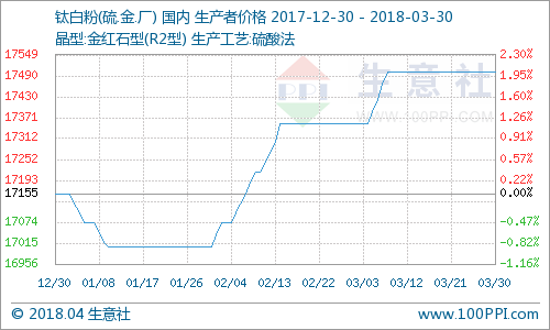 生意社钛白粉分析师杨逊认为:3月龙企价格守恒,少数持货商“心慌”低价出货,但掩饰不掉多数的盼涨情绪,4月开春回暖,后市钛白粉的价格硬度或有所加强,短期看,实单操作一单一议。