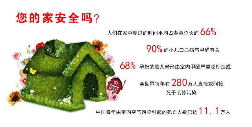 据有关资料显示,全球4%的疾病与室内环境有关,全世界每年约有200万例死亡可能是室内空气污染所致,30万人因为室内空气污染而死于哮喘病,其中35%为儿童。室内环境污染已经成为危害人类健康的主要因素之一。