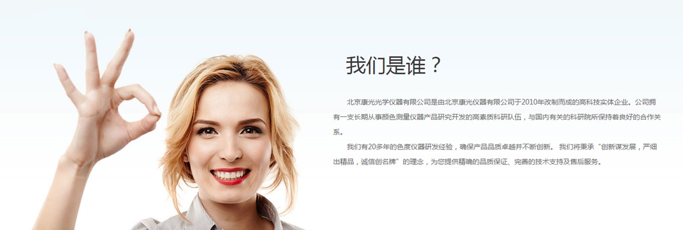 北京康光光学仪器有限公司是由北京康光仪器有限公司于2010年改制而成的高科技实体企业。公司拥有一支长期从事颜色测量仪器产品研究开发的高素质科研队伍,与国内有关的科研院所保持着良好的合作关系。我们有20多年的色度仪器研发经验,确保产品品质卓越并不断创新。 我们将秉承“创新谋发展,严细出精品,诚信创名牌”的理念,为您提供精确的品质保证、完善的技术支持及售后服务。