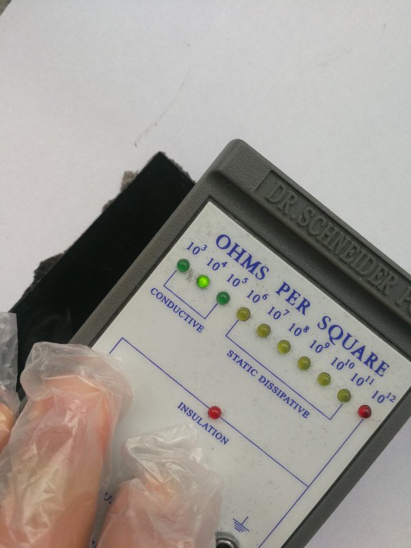 (超高导电纳米碳材料填充PC塑料表面电阻率数据,1mm厚度测试片)