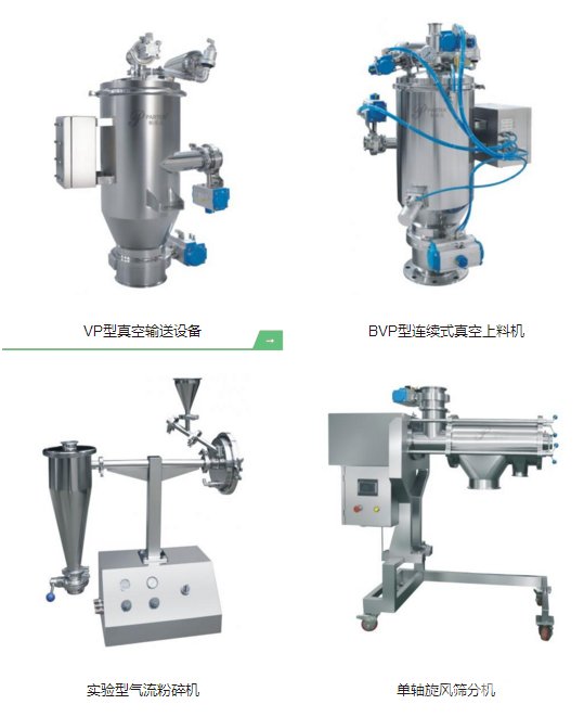 帕泰克公司粉体设备有真空上料机、锤式粉碎机、摆式粉碎机、大小袋投料站、卧式旋风筛分机、称重包装系统等。制丸制粒设备有挤出机、滚圆机、离心造丸机、流化床等。