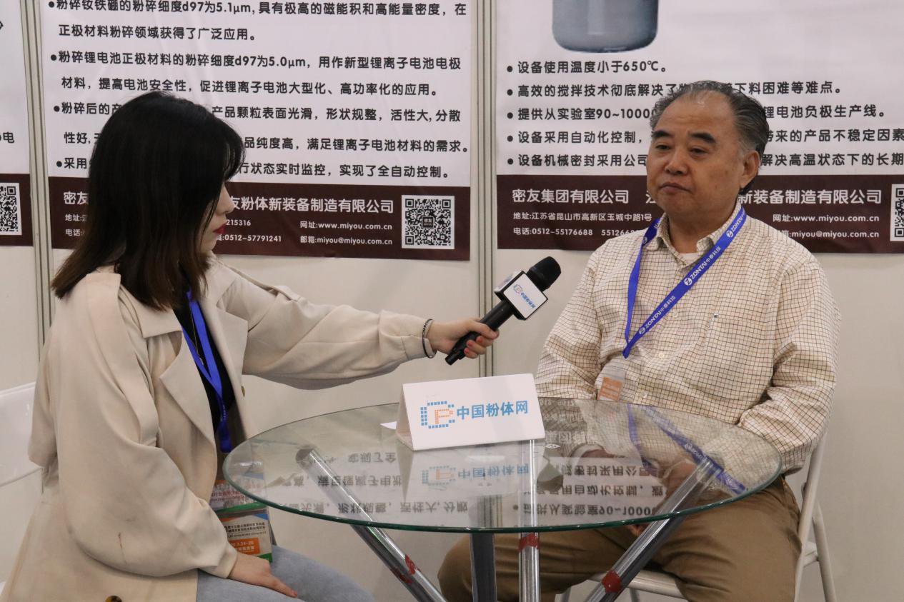 密友集团有限公司是专业研发制造销售 :粉体装备制造成套化、容器搅拌密封一体化、高温惰性气体保护粉碎分级生产线(锂电池正极专用)、智能化锂电池负极用高温包覆釜生产线、有色金属稀土钕铁硼专用粉碎分级生产线、WP、WDG、SC、AS智能化农药生产线、DF低塔连续干燥造粒制备生产线、非金属矿粉体等系列产品的国家高新技术企业。此次展会中国粉体网记者对密友集团总裁吴建明进行了专访。