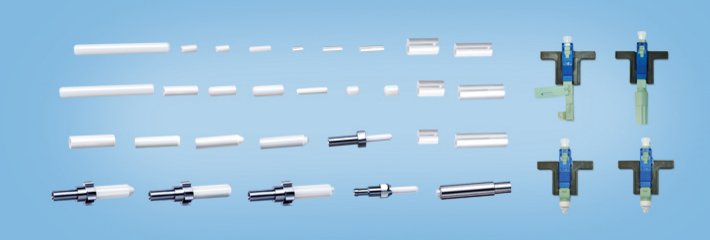 包括MT插芯及陶瓷导针、陶瓷插芯、陶瓷套筒、非标插芯、非标套筒、快速连接器用纤插芯、激光器用带纤插芯、光纤到户陶瓷快接方案、光电子封装用部件。