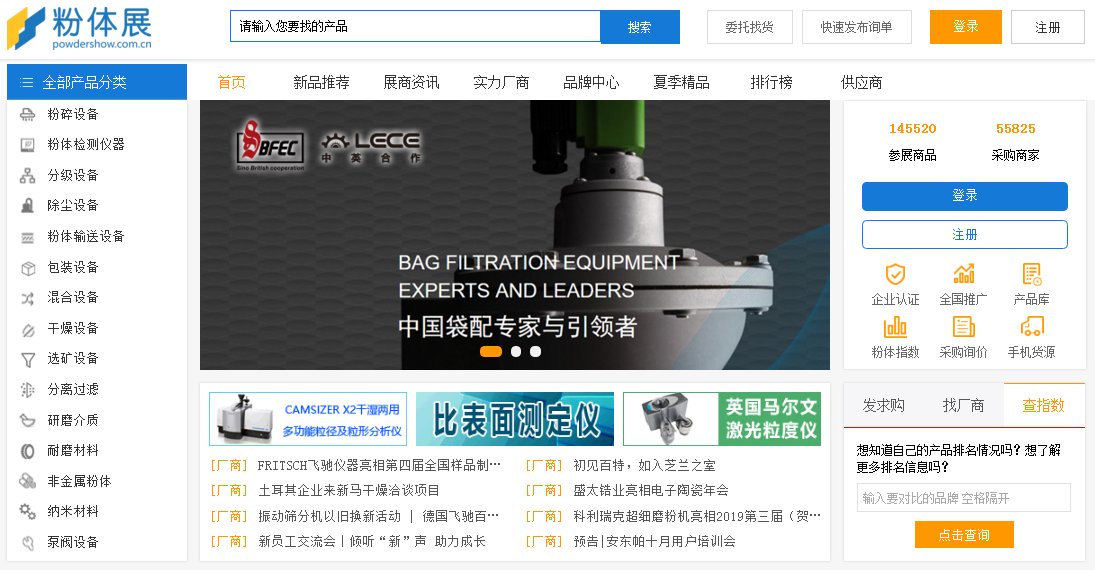 粉体展是电子商务信息服务平台,始于2007,入驻商家10000+家,参展商品140000+种,采购商家55000+家,采购询盘100000+条。众多入驻商、采购商已受益,您还在等什么?