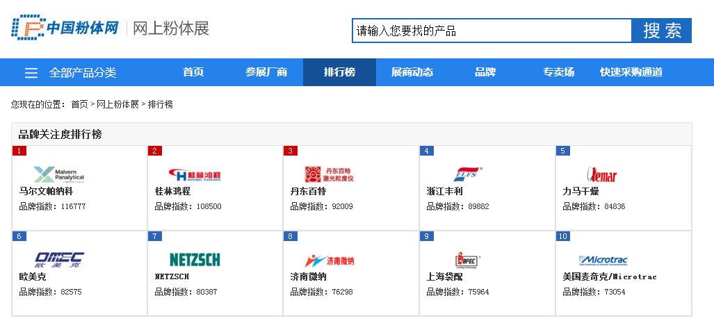 粉体展特推出全新栏目,包括“指数”排行榜、查指数等。