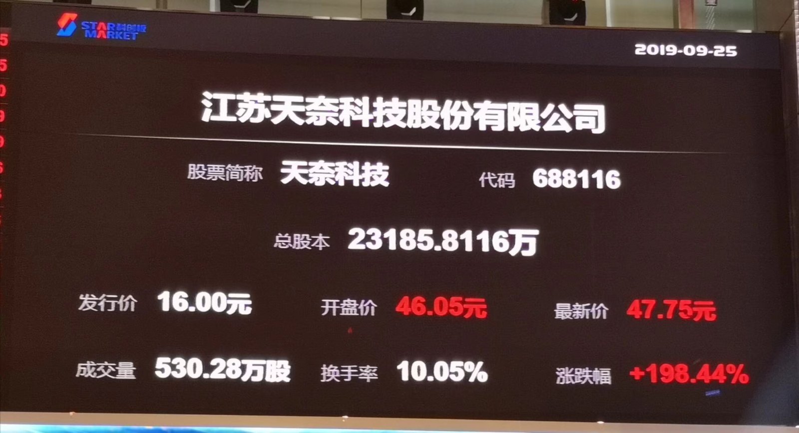 腾讯证券.天奈科技今日科创板上市 股价高开187.8%