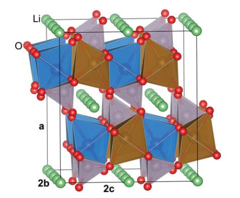 LiMnPO4属于橄榄石型结构,正交晶系,空间群为Pnma。其晶胞参数为a=1.04448nm,b=0.61018nm,c=0.47313nm,每个晶胞中有4个LiMnPO4单元。晶体骨架由MnO6八面体及PO4四面体组成。