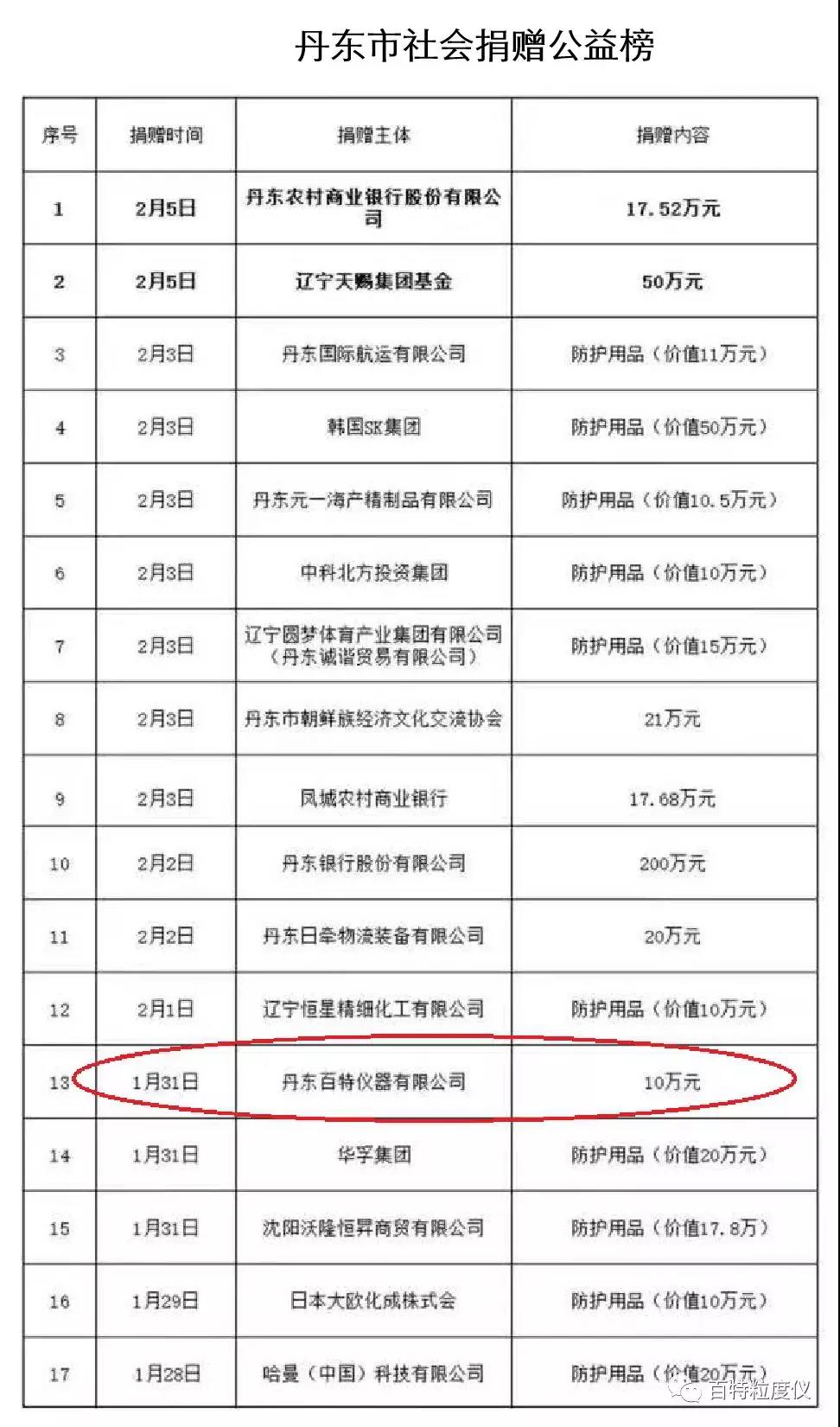 公司总经理董青云、副总经理刘忠兰鼎力支持公司党支部发起的“抗疫情,献力量”捐款倡议。他们在代表公司向丹东慈善总会捐款10万元后,指示将库存的一百多只红外线体温枪捐赠给企业和社会各界用于防控疫情,又积极参加党支部发起的捐款活动,表现出了企业家胸怀国家、无私奉献的情怀。