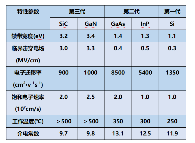 由典型半导体材料特性参数对比可以看出,GaN和SiC的材料特性主要有以下优点: