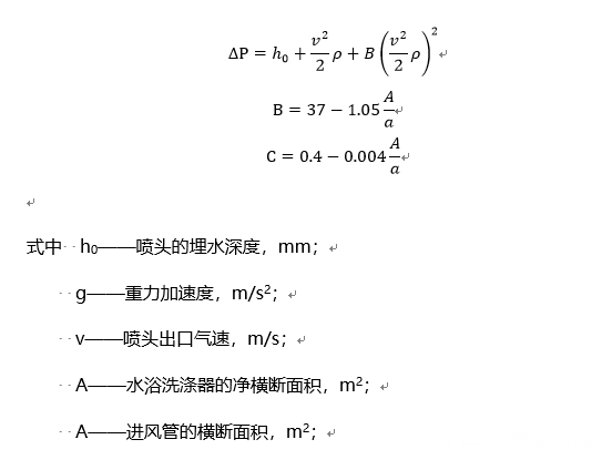 水浴除尘器的阻力△P(Pa)可按下式计算: