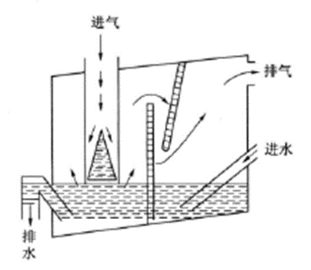 这种除尘器结构简单,可在现场因地制宜采用砖或混凝土砌筑;耗水量少(0.1~0.3L/m3),但对于细小粉尘的效率不高,泥浆清理困难。此外当气流通过喷头冲入水中时,引起水面频繁地剧烈波动,使除尘器工作不稳定,不能保证必需的效率。