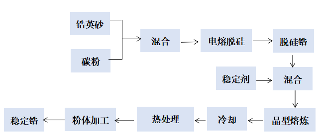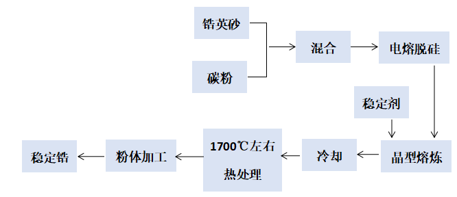 制备电熔稳定氧化锆的一次熔炼法工艺流程