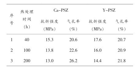 Ca-PSZ和Y-PSZ承烧板抗折强度及气孔率