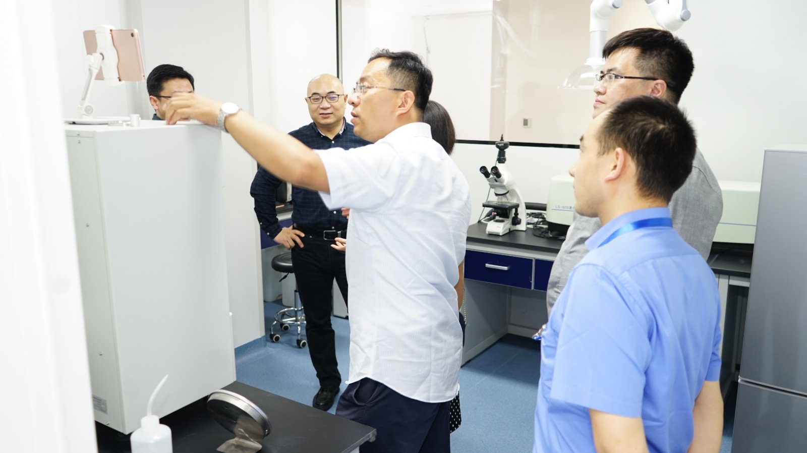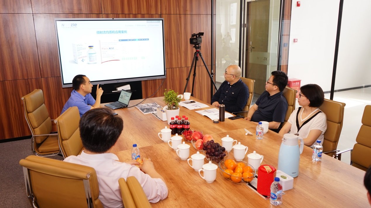 诺泽流体科技总经理张锋为嘉宾们先介绍公司两大核心产品,微射流均质机和超微粉气流粉碎机应用成果,后陪同嘉宾一起参观技术中心。