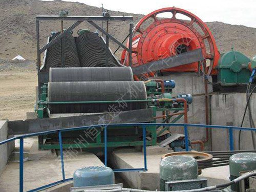顺流型(CTS):给矿方向与圆筒的旋转方向或磁性产品的移动方向一致,此类机适用于0-6mm的磁性矿石的精选和粗选,且精矿品位较高。