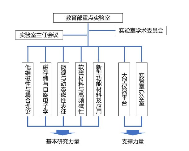 实验室依据“自主创新、重点跨越、支撑发展、引领未来”的方针,实行“开放、流动、联合、竞争”的运行机制,与美国、德国、加拿大、英国等国内外研究机构和企业有密切合作。实验室现有固定科研人员68人,工程技术人员8人,管理人员1人,以及流动人员71人。固定科研人员中正高职33人,其中,国家杰出青年基金获得者4名,长江学者2名,优青4人,教育部跨/新世纪优秀人才10名,教育部创新团体1个,有突出贡献的中青年专家1名。实验室已成为我国乃至世界磁学与磁性材料领域创新性人才培养、高水平科学研究、服务社会需求及国家目标的重要基地。