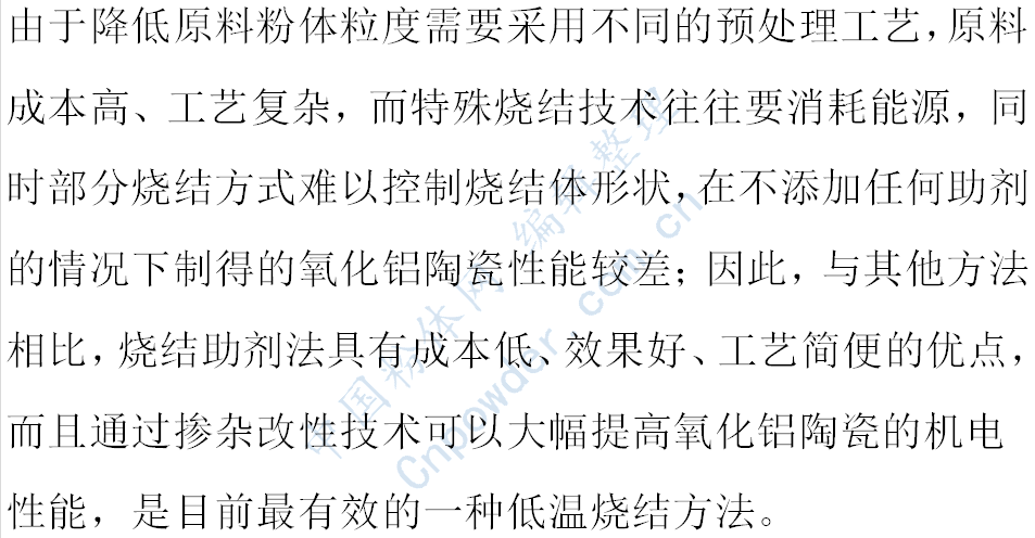 目前降低氧化铝陶瓷烧结温度的方法很多,比如降低氧化铝粉的粒度、采用特殊的烧结工艺、添加烧结助剂等。