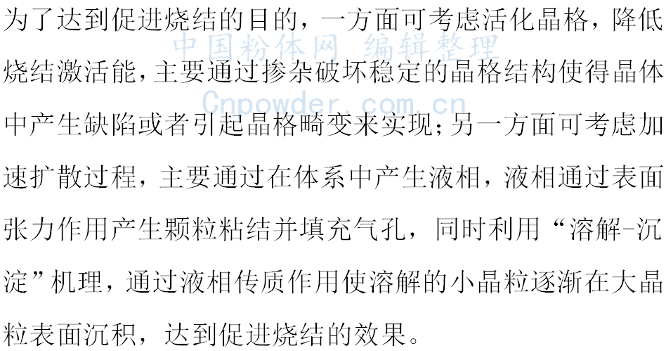 烧结是通过加热使原料粉体产生颗粒粘结、经过物质迁移使粉末体产生强度并导致致密化和再结晶的过程。普通陶瓷粉体之所以难于烧结,原因就在于其晶格能较高、晶体结构稳定,质点扩散需要较高的活性,即烧结激活能大,因此需要较高的温度。
