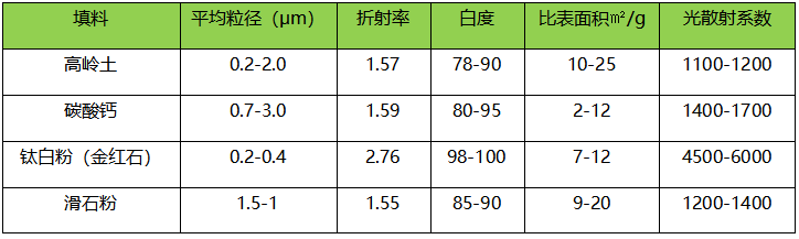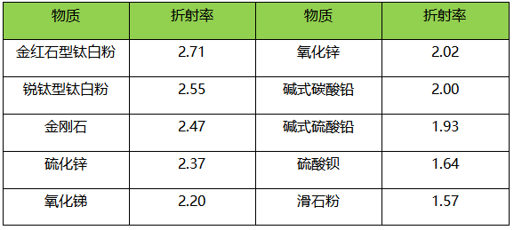 常用白色颜料的遮光指数