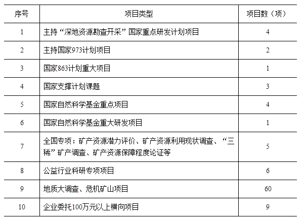 1、完成国家重大科技攻关项目。国家863计划资源环境技术领域“深部矿产资源勘探技术”项目,由吕庆田研究员科研团队牵头完成。国家973计划“中国海相钾盐成矿规律及预测研究”项目,由刘成林研究员科研团队完成。国家“973”计划项目“我国富铁矿形成机制与预测研究(2012-2016年),由李厚民研究员科研团队完成。