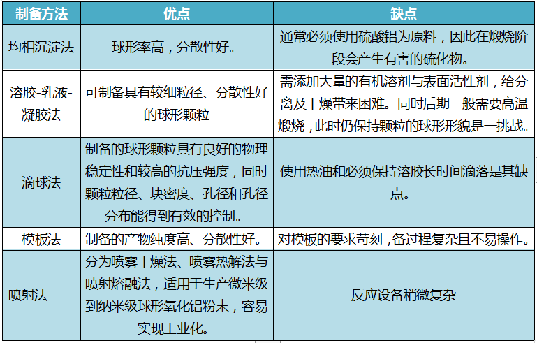 球形氧化铝制备方法特点对比