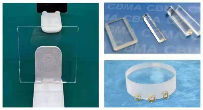 光掩膜石英玻璃(左)、耐辐照滤紫外石英玻璃(右上)、高纯石英玻璃(右下)