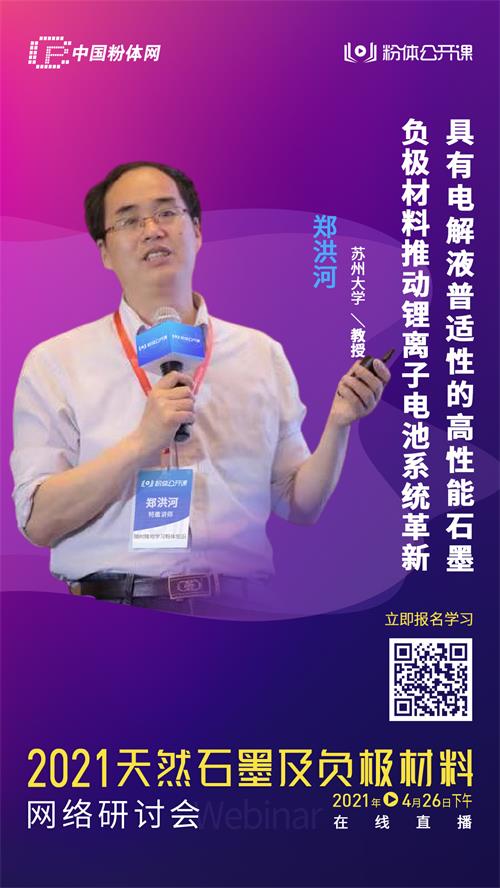 为分析研判石墨需求、探讨石墨深加工技术,中国粉体网旗下粉体公开课平台将于2021年4月26日举办首届“2021天然石墨及负极材料网络研讨会”,届时来自苏州大学的郑洪河教授将作《具有电解液普适性的高性能石墨负极材料推动锂离子电池系统革新》报告,围绕高性能石墨负极材料这一主题,讲述所在团队发展了功能分子在电极表面的嫁接和原位转化技术,有效降低了石墨材料对EC电解液的依赖性。通过这项技术制备的高性能石墨材料可以在PC基电解液、普通酯类电解液和醚类电解液中发挥优异的电化学性能,从而大大拓宽锂离子电池的电解液种类和应用场景,推动锂离子电池系统的革新和进步。
