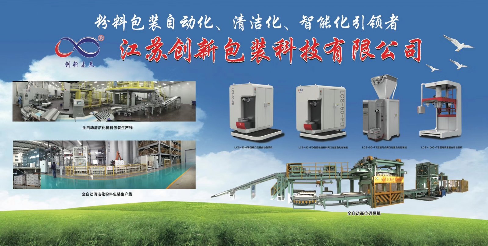 江苏创新包装科技有限公司作为粉料包装智能化、清洁化的引领者,主要生产定量自动包装机、全自动包装码垛生产线以及阀口包装袋等三大系列产品。在电池材料等黏性粉料、含气粉料、超轻细粉料包装领域填补多项国内空白。